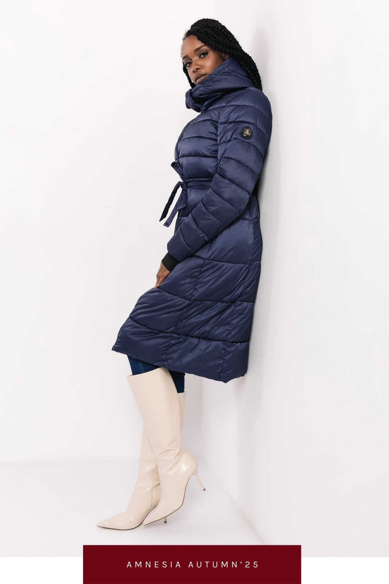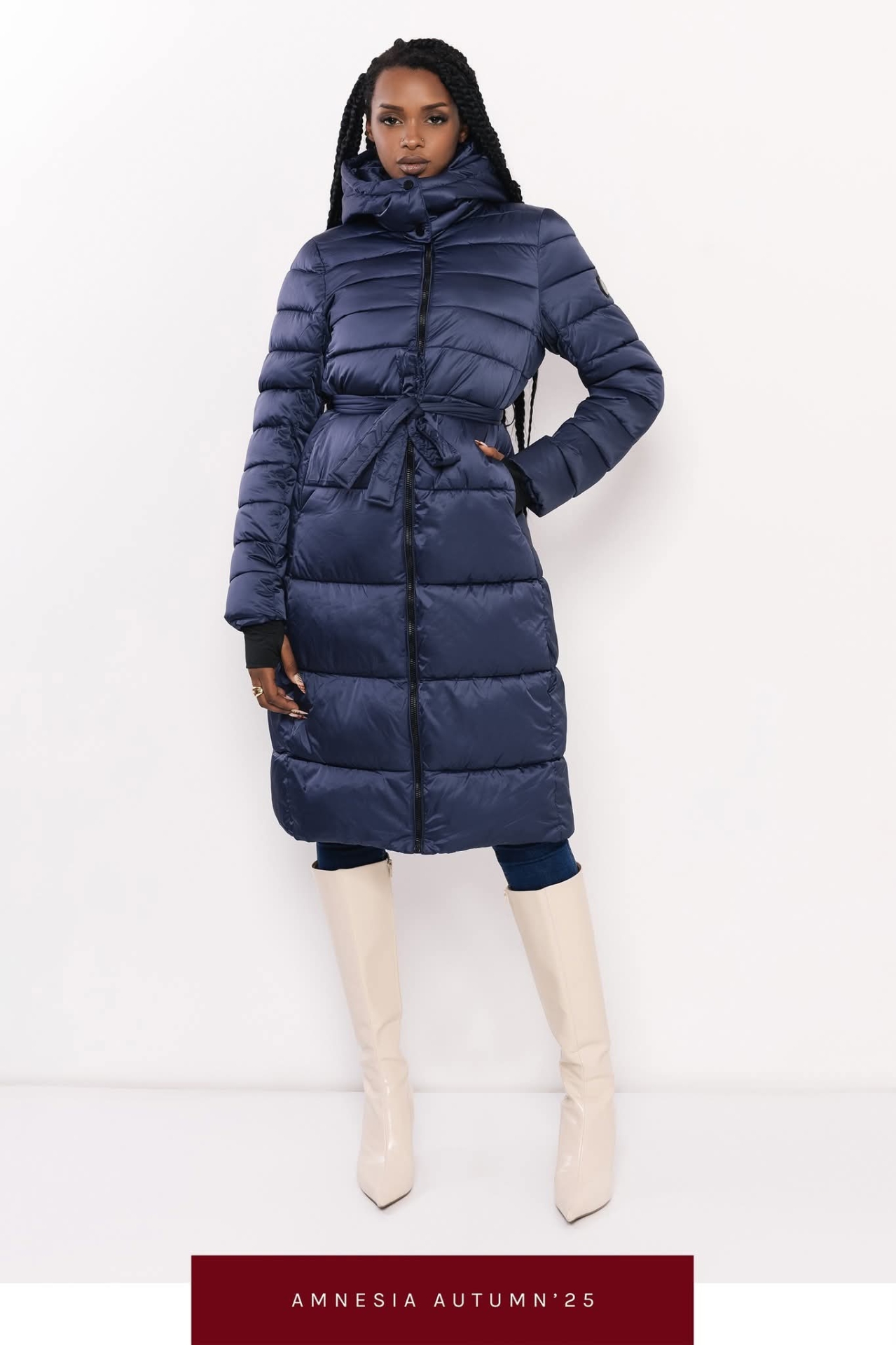 Amnesia Blanka steppelt hosszú télikabát-kék