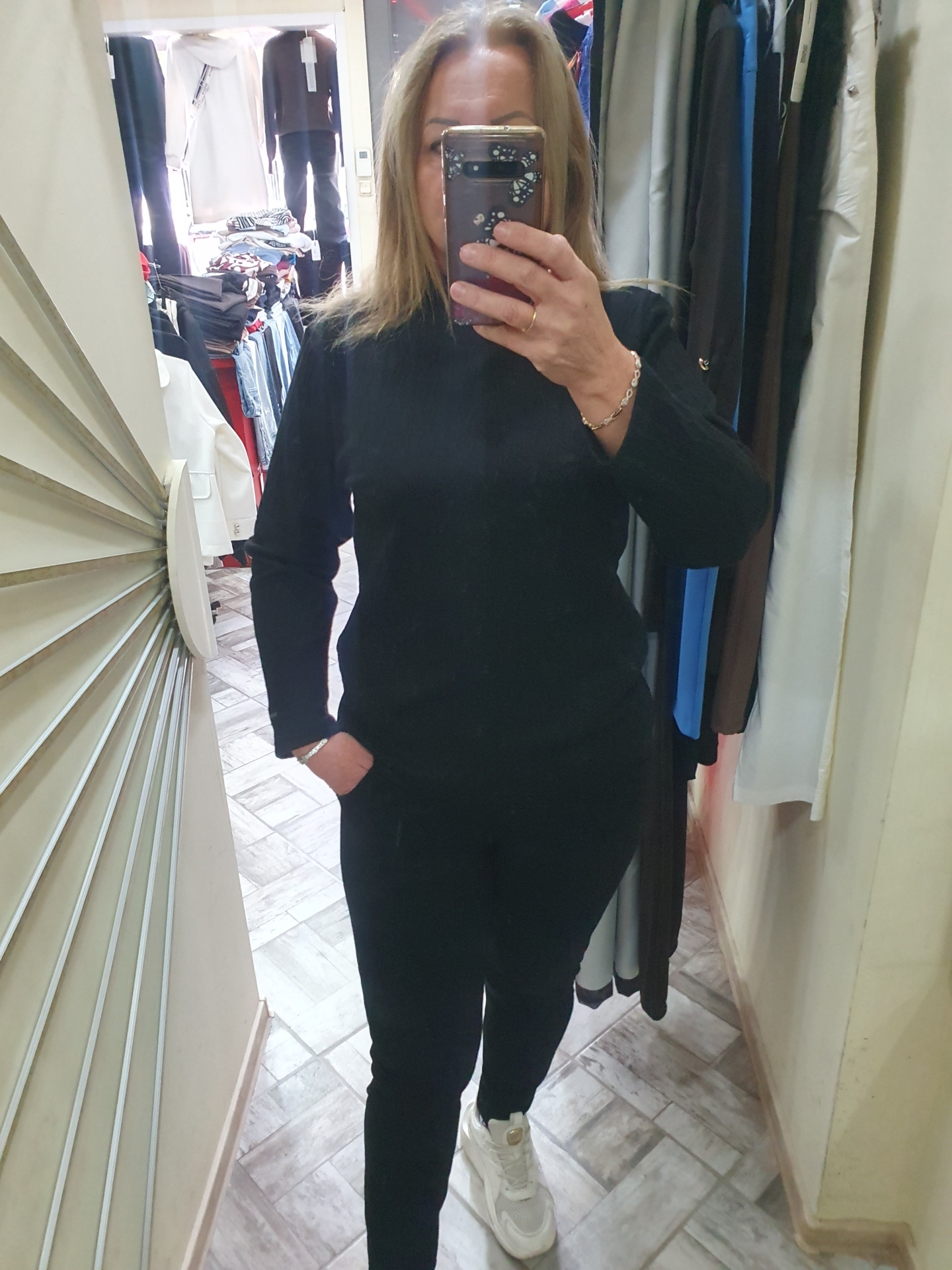 Warp Zone kötött felső átlapolós nyakkal-fekete