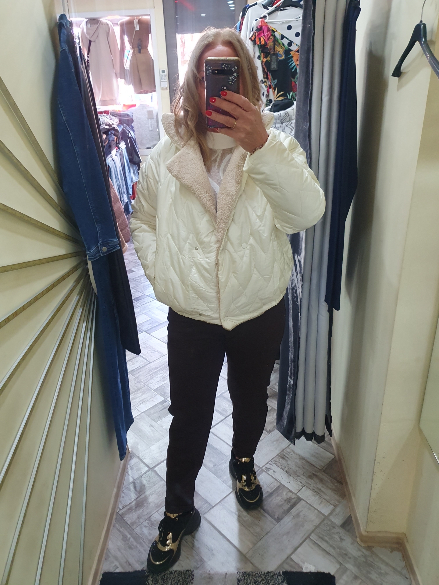 Prémes nyakú átmeneti kabát-krém